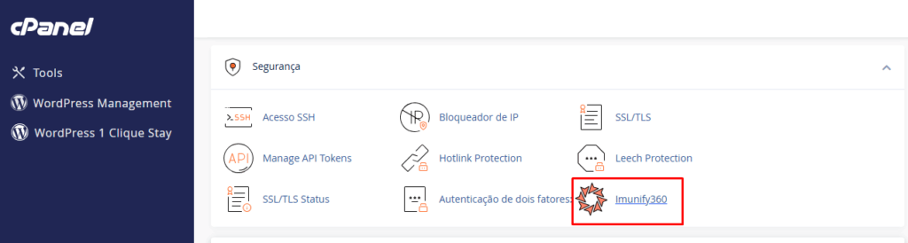 No seu cPanel, localize a seção Segurança e clique em Imunify360.