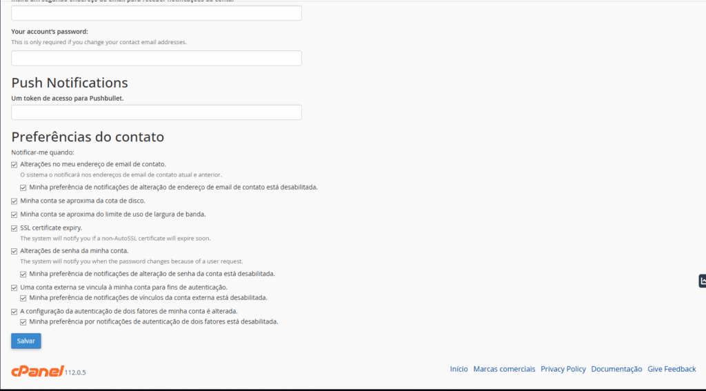 O cPanel envia notificações automáticas sempre que algo relevante acontece na sua conta.